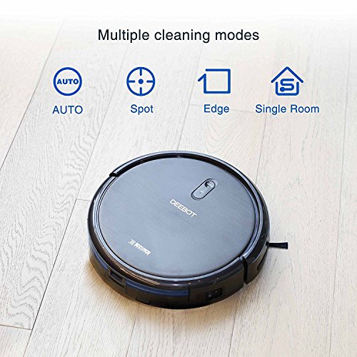 - Ecovacs Basic Features: Includes anti-drop & anti-collision sensors, ~120 minute battery life, auto-return charging, durable protective bumpers, air filtration, anti-scratch finish, a large easy-to-empty dustbin, large wheels for climbing thresholds, etc.