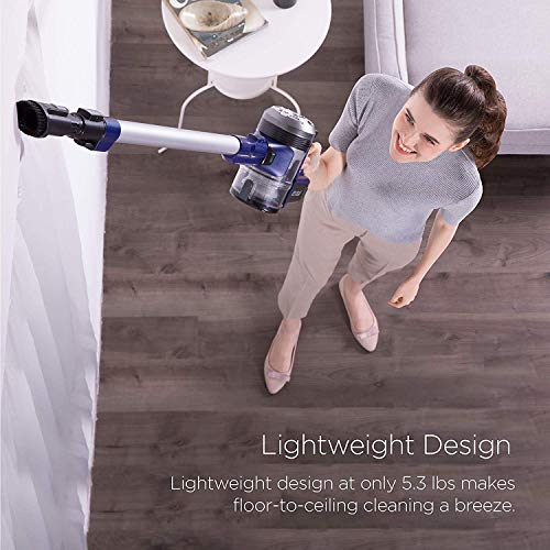 - (Lightweight & Maneuverable) With this portable stick vacuum at only 5.3 lbs., equipped with swivel steering and a low profile nozzle, this vacuum is perfect for cleaning under and around furniture