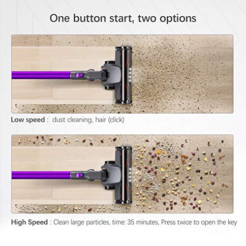 - [FRIENDLY-DESIGN & COMFORTABLE]--This cordless lightweight Vacuum cleaner is quieter than your full-size home vacuum cleaner.An advanced cyclone in HEPA filtration system lock in all particles and prevents the further spread of allergies and reduces bacteria.